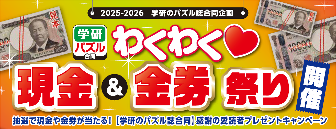 現金5万円や現金1万円などが当たるGakkenパズル誌合同企画「わくわく💓現金&金券祭り」が好評開催中です! キャンペーン対象誌のポイント券を規定のポイント数集めてお送りください。締め切りは4月30日(木)当日消印有効です。たくさんのご応募をお待ちしています! 👇くわしくはこちら